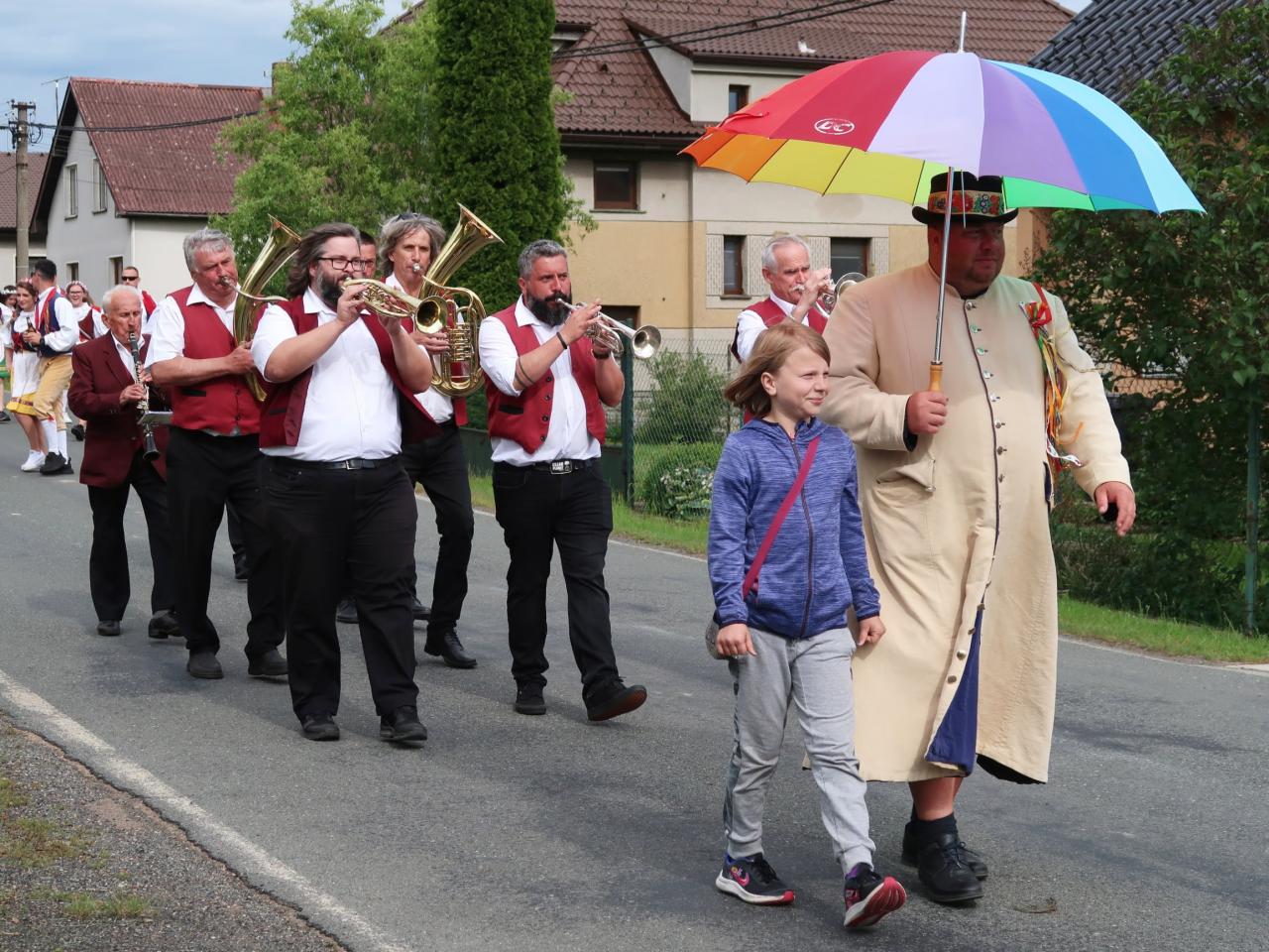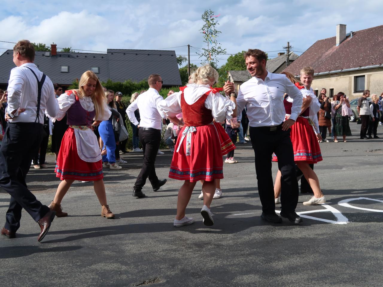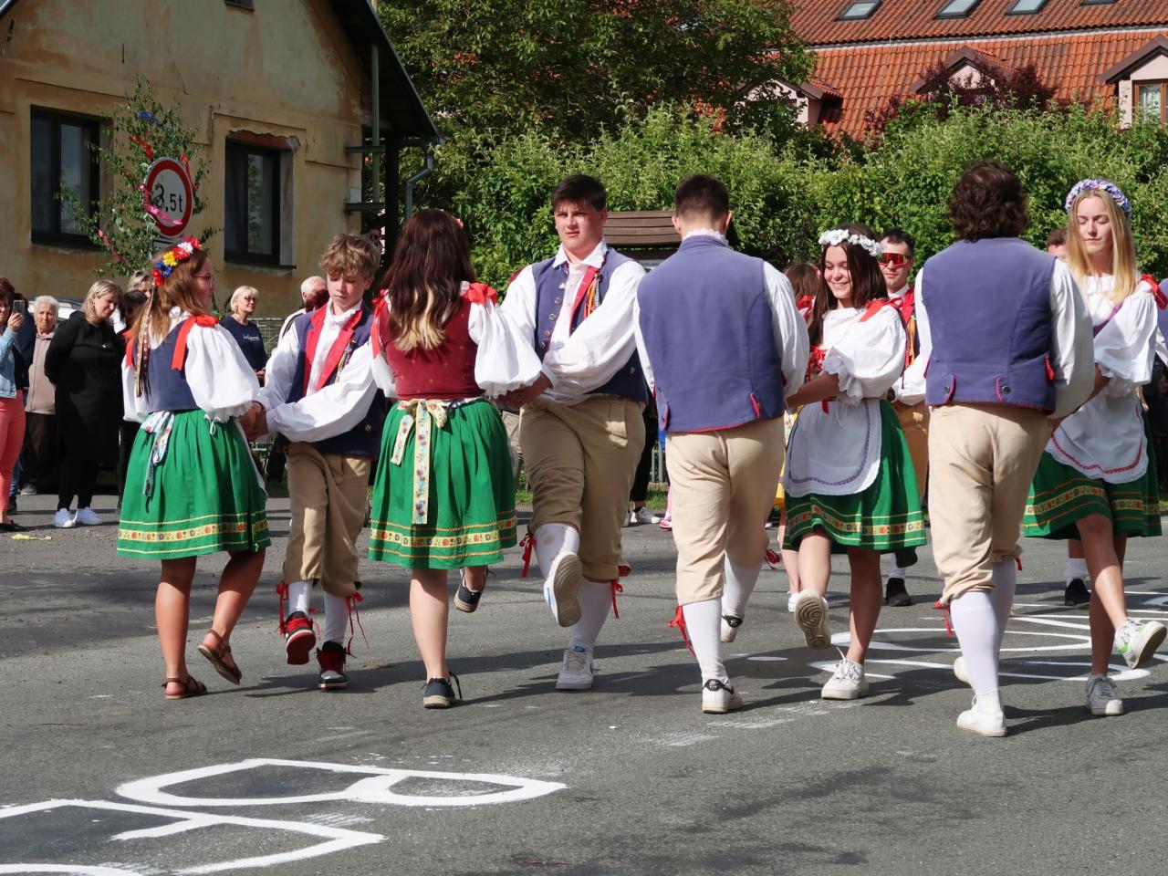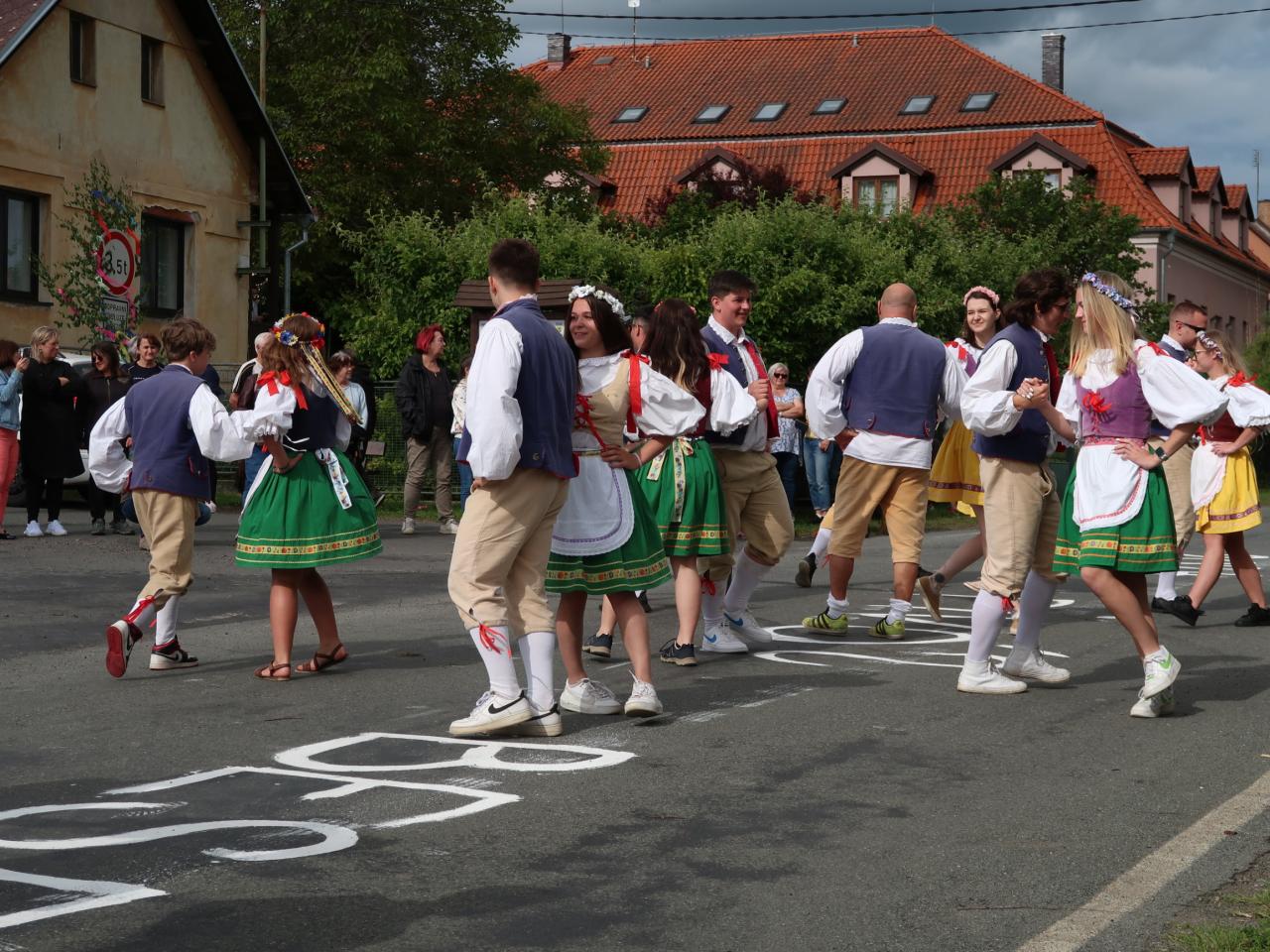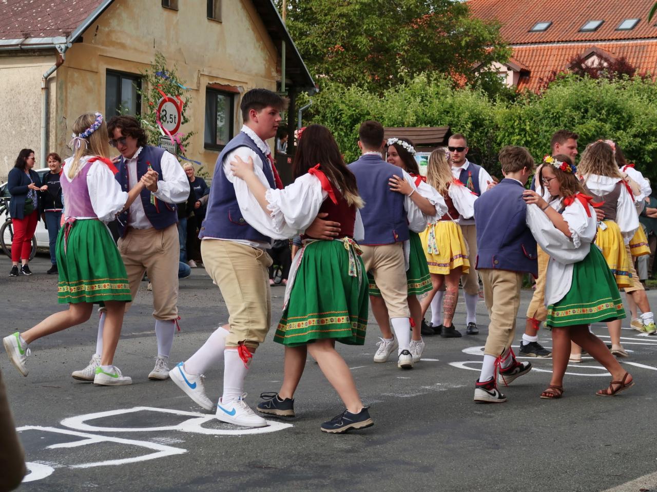 V sobotu 15.6. 2024 se v naší obci uskutečnily Polosuché Máje v Těních 2024. Od rána panovala dobrá nálada, počasí vyšlo na jedničku a po celé vsi byl slyšet zpěv tanečníků. Staročeská beseda pro diváky byla zatančená pod Májí u hospody za hudebního doprovodu Cheznovanky.