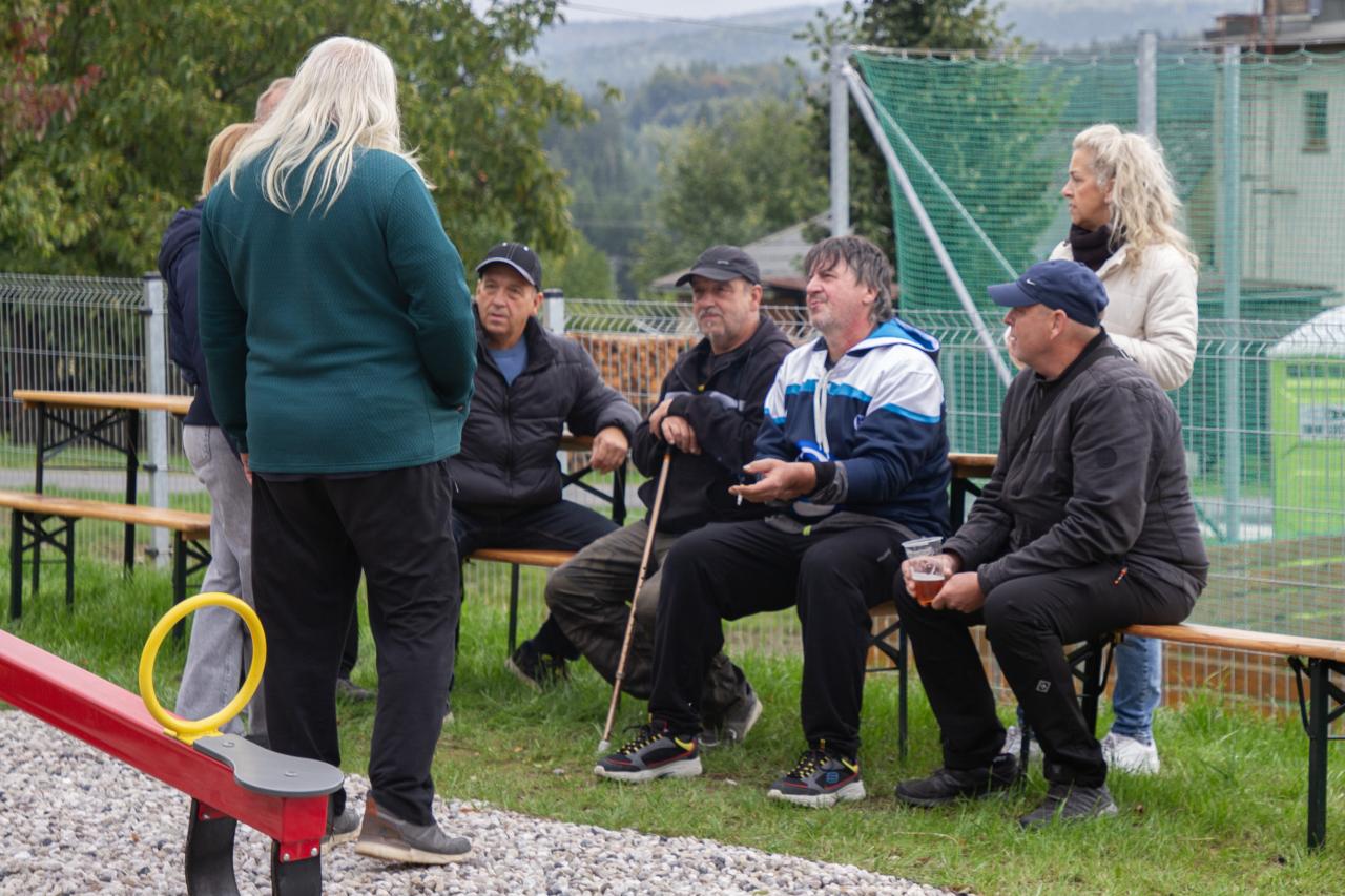 Slavnostní odpoledne zahájil uvítáním místostarosta obce p. Jakub Svejkovský s rozhodčím p. Václavem Dobrým. Popřáli veselou zábavu a férovou kopanou.